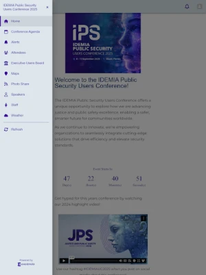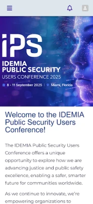 Welcome to the IDEMIA Public Security Users Conference 2025 held at the InterContinental hotel in Miami, Florida! This official app is your go-to source to keep you informed during your stay. Includes the conference agenda, event details, hotel maps, and photo sharing. Be sure to enable push notifications on your mobile device to receive important updates on schedules, weather, and more.