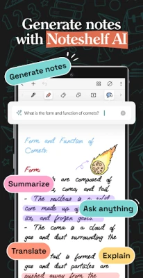 - Use Noteshelf AI to summarize whole pages, translate text into different languages, explain complex terms, and more.