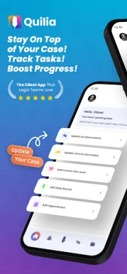 - Real-Time Communication: Stay connected with your attorney through instant updates and notifications. Quilia helps ensure your case stays on track without delays or misunderstandings.