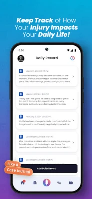2. Progress Journaling: Easily document how your case impacts your daily life. Record key milestones, symptoms, or important events to provide a full picture of your journey—whether it's for legal purposes or personal clarity.