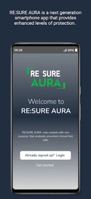 RE:SURE AURA is a revolutionary app that gives you a previously unimaginable level of personal protection on the go. Wherever you are with your smartphone, you will be a button press away from help. When you activate RE:SURE AURA, our 24-7 Control Centre will immediately receive an alarm giving your exact location and showing us audio and video of the event that has transpired.