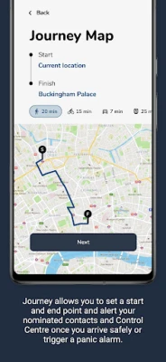 The Meeting Timer allows you to set up an expected meeting duration time. Once this is done, a countdown timer starts both on your phone, and remotely in our secure servers. This timer must be stopped within that period of time in order to prevent the alarm being activated in the RE:SURE Control Centre. If the alarm time needs to be extended a discrete push of a button can postpone it in 15-minute/1 hour intervals.
