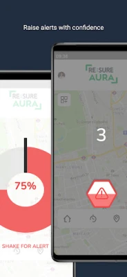 RESURE AURA is activated in a time of distress by either shaking or tapping the screen of your smartphone. Upon activation your phone immediately begins recording short video and audio clips, which, along with your exact location, are then sent to the RE:SURE Control Centre. Our highly trained operatives will analyse this information, contacting you, your emergency contacts and, when necessary, the emergency services in order to ensure your safety.