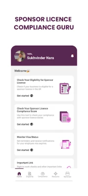 Sponsor Licence Compliance Guru - Sponsor Licence Compliance Checker app by Nara Solicitors to keep your business complaint, Check sponsor licence eligibility, compliance score of your business, Set reminders and receive notifications for your employee's visa expiries and more.