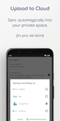 Don't want to lose recordings in case your phone is lost or stolen? Optionally upload recordings to your private cloud (pro feature).
